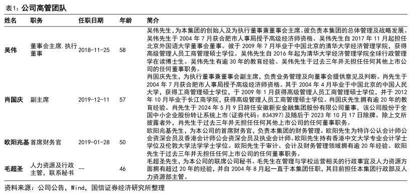 核心管理团队以创始人吴俊保为核心,搭配多名资深高管分工协作,构建了完善的决策与执行体系。公司董事会主席吴俊保是公司的创立者,近四十年来主导了公司多品牌布局、规模化扩张、战略转型等关键决策,从新东方烹饪的品牌打造,到七大区域中心的战略落地,再到美业等新兴赛道的孵化。高管团队专业分工清晰,形成高效协同的运营机制。其中,核心运营高管多出身于一线办学体系,熟悉校区管理、师资培养与课程落地,主导公司标准化办学模式的搭建与复制,推动全国校区教学质量与服务水平的统一,解决跨区域扩张中的管理脱节问题。