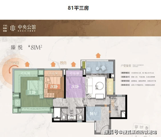 保利招商华发中央公馆的主力户型设计各具优势,充分满足不同购房者的需求。81平三房户型在紧凑的空间内实现了功能齐全,且做到双卫设计,极大地提高了生活便利性,满足了家庭成员的日常使用需求。89平三房户型布局合理,动静分区明确,客厅与餐厅相连,营造出开阔的公共活动空间,让家庭聚会更加舒适。116平四房户型空间更为宽敞,南北通透,采光与通风效果俱佳,能满足三代同堂的改善型居住需求。主卧套房设计,带有独立卫生间,保障了主人的私密性与舒适度。159平南向四房则定位为高端改善产品,采用大面宽设计,拥有270°双面采光,视野开阔,居住体验极佳。主卧配备独立卫浴与浴缸,为主人提供了尊贵的居住享受。无论是刚需还是改善群体,都能在这里找到适合自己的理想户型,尽享舒适生活。